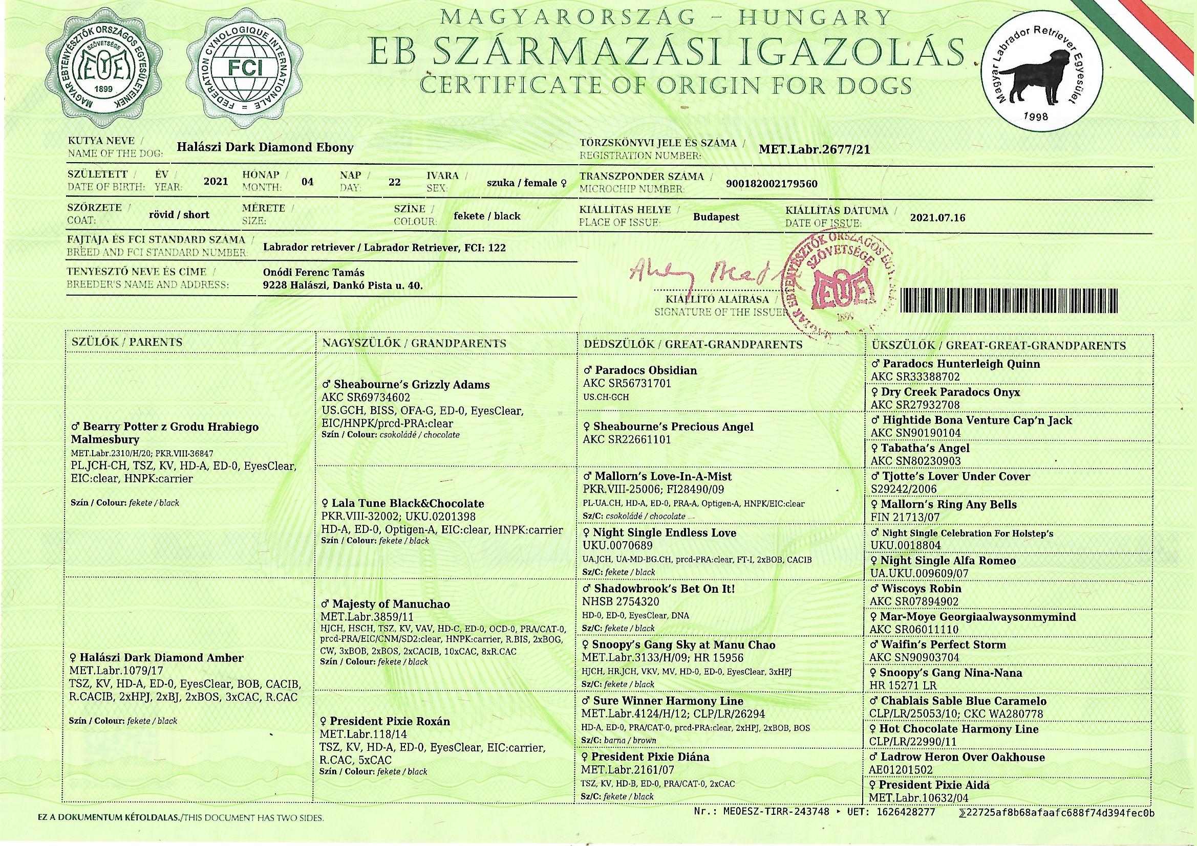 Halászi Dark Diamond Ebony ‘Boni”