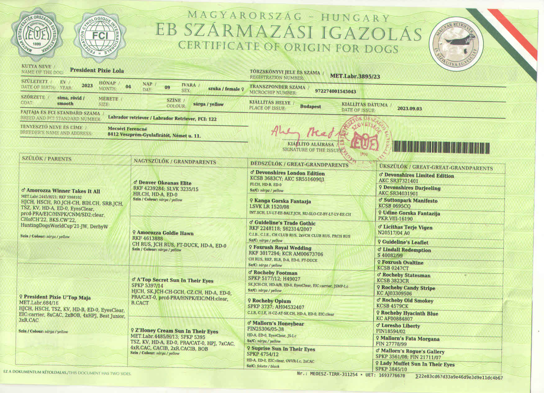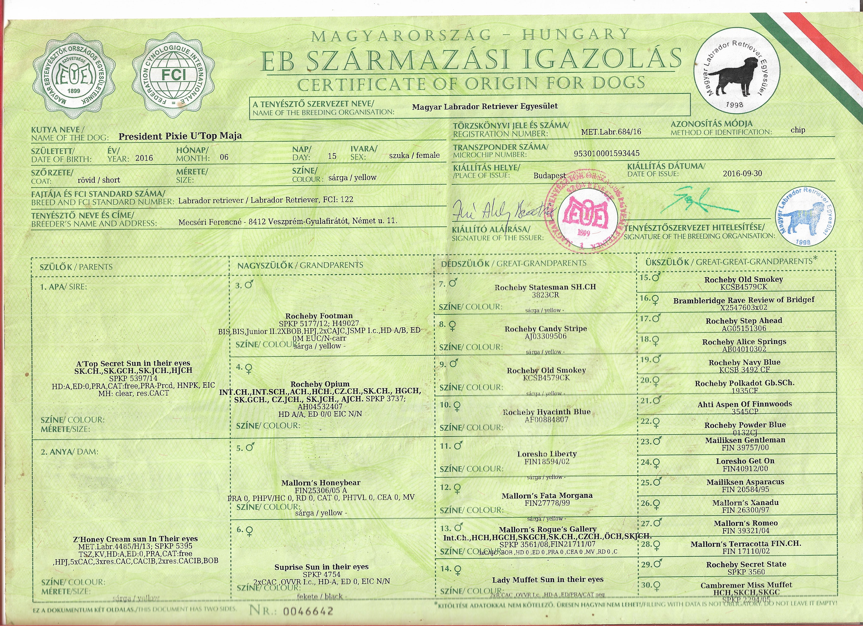 President Pixie U’Top Maja
